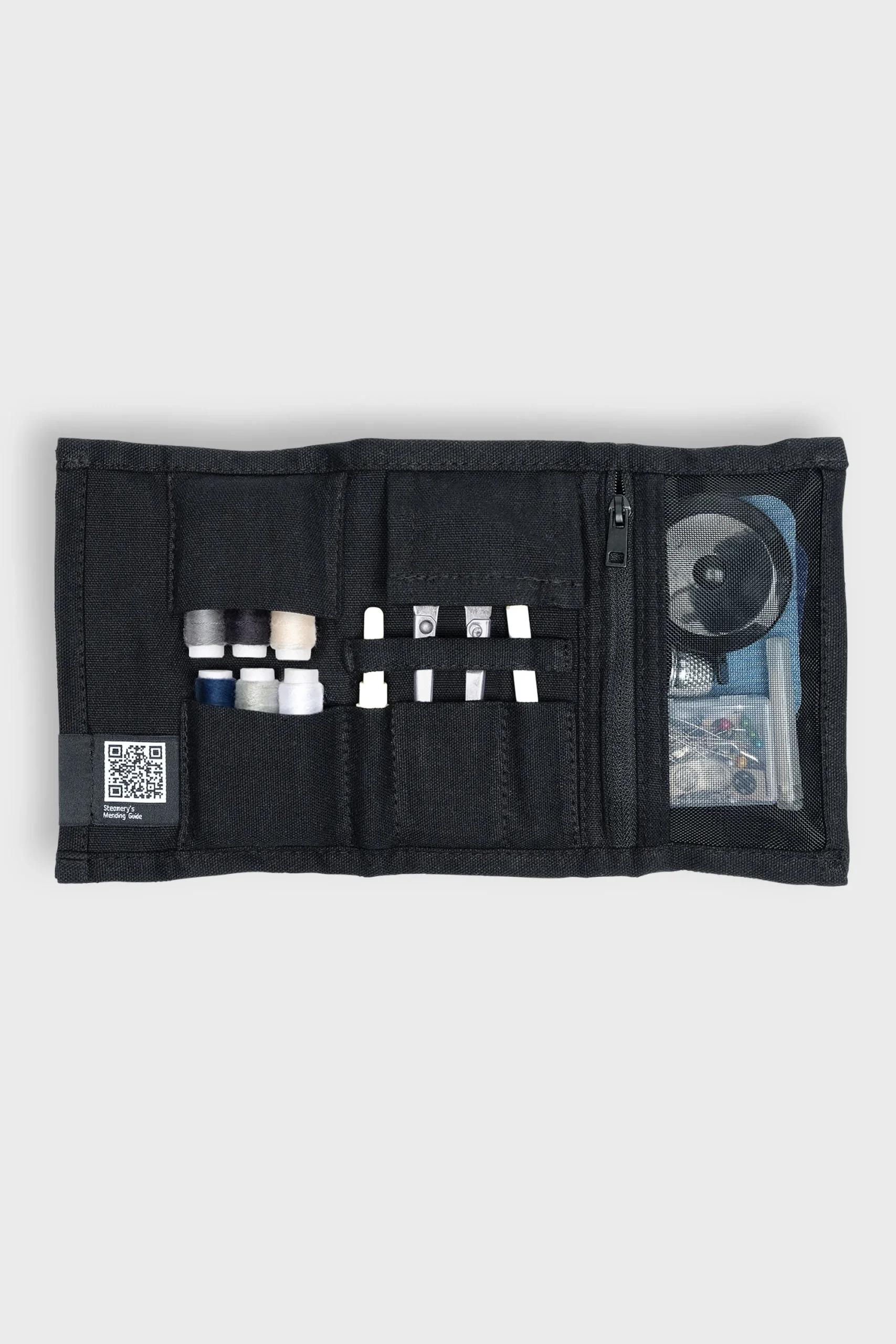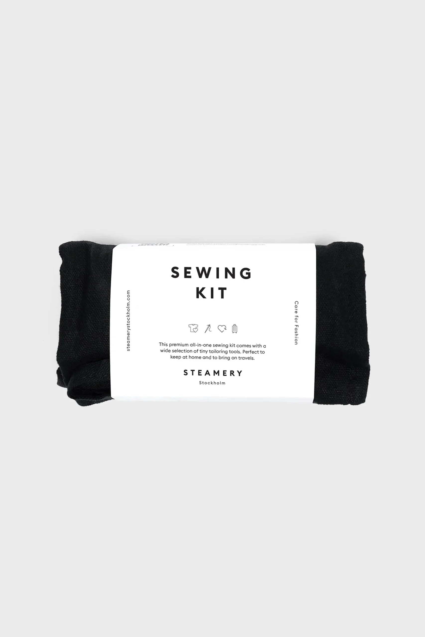 This sewing kit by Steamery contains all the essential tools and accessories for garment repair, carefully selected by professionals. The roll-up case is ideal for at home or on the go for sustainable garment care.